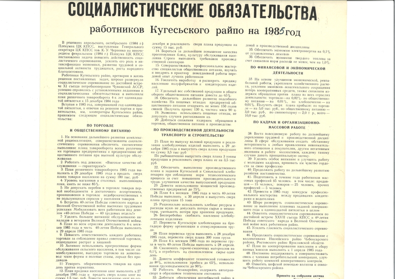 Директор лично отвечал за обеспечение выполнения планов и заданий по заготовкам и поставкам дикорастущих плодов, ягод, грибов, меда, яиц, мяса, лекарственно-технического сырья, живсырья, пушнины, костей, пуха и пера, макулатуры, шерсти, а также за организацию переработки и доставки. Ежегодно заготовлялся картофель, который отгружался в разные уголки страны – промышленные центры, воинские части, республики Средней Азии, Грузию, Кубу, Брянскую и Куйбышевскую области и др. Шерсть отправлялась на Казанскую фабрику первичной обработки шерсти; кули лыковые – на стекольный завод в Вышнем Волочке; мед, яйца и мясо – в ресторан «Дубрава», детские сады и больницы Чебоксарского района; грибы (строчки и сморчки) – на экспорт во Францию; живсырье – на обувные фабрики; пушнина – в мастерские и на фабрики по переработке пушнины и кожи…